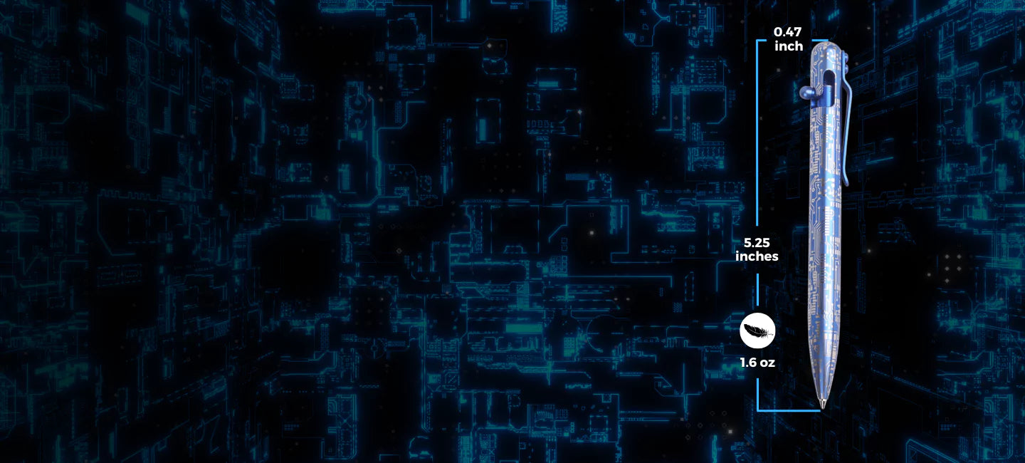Step into the future of design and functionality with the NEXUS, a masterpiece that brings the elegance of modern technology to the palm of your hand. Each pen is meticulously crafted with a detailed circuit-etched pattern and finished in a striking anodized blue, making it a unique work of art.