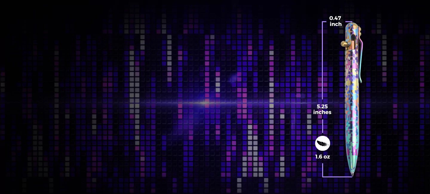 Step into the future with the PIXEL BLITZ, a dazzling masterpiece that brings the energy of digital art into your hands. Each pen is meticulously hand anodized, creating a vibrant pixelated pattern that radiates boldness and creativity. Its unique design is a nod to modern technology and artistry.
